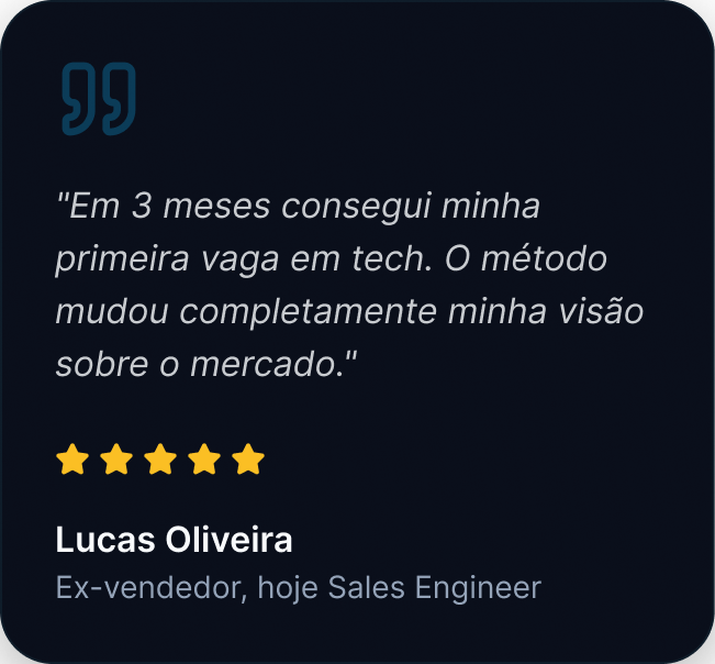 Descubra como jovens entre 18 e 30 anos estão entrando no mercado tech e alcançando salários de 5 dígitos em poucos meses como Sales Engineer, mesmo sem experiência ou diploma na área